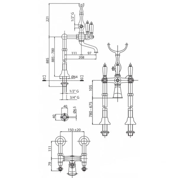 Смеситель для ванны Cezares Diamond (DIAMOND-VDPS-02-Sw) напольный бронза