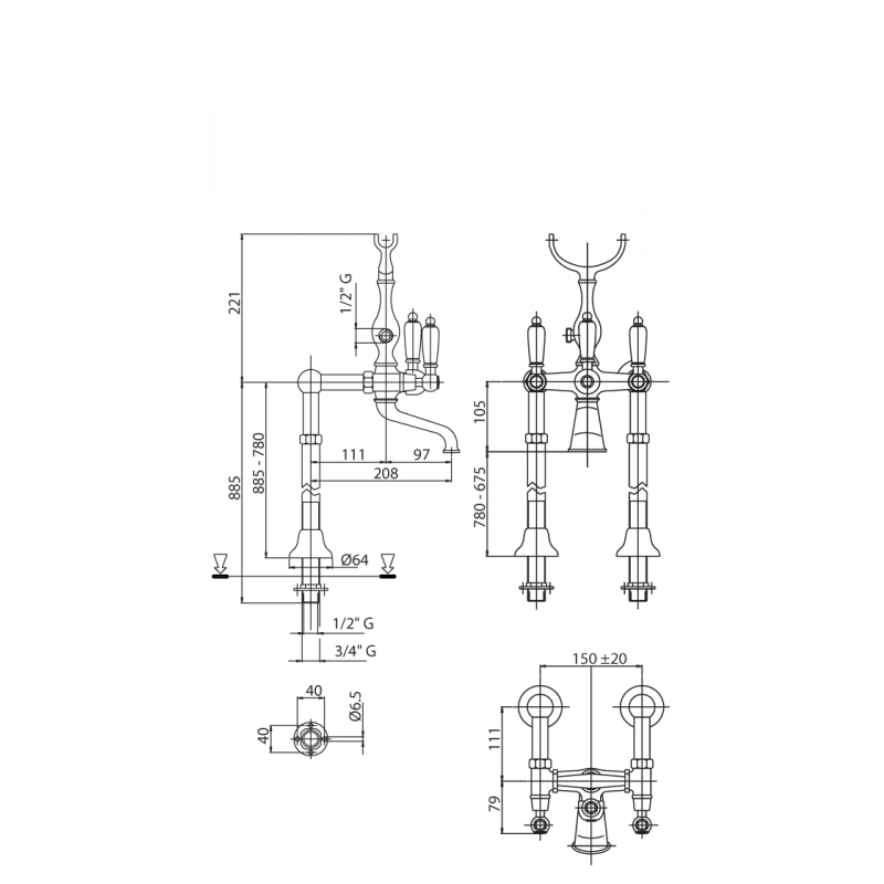 Смеситель для ванны Cezares First (FIRST-VDPS-02-Bi) напольный бронза