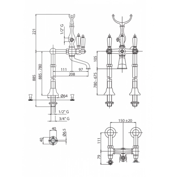 Смеситель для ванны Cezares First (FIRST-VDPS-02-M) напольный бронза
