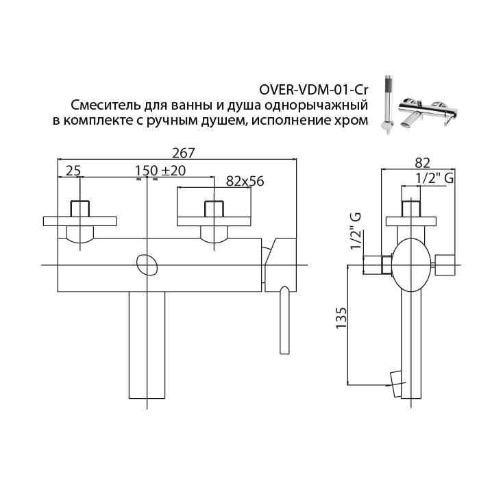 Смеситель для ванны Cezares Over (OVER-VDM-01-CR) хром
