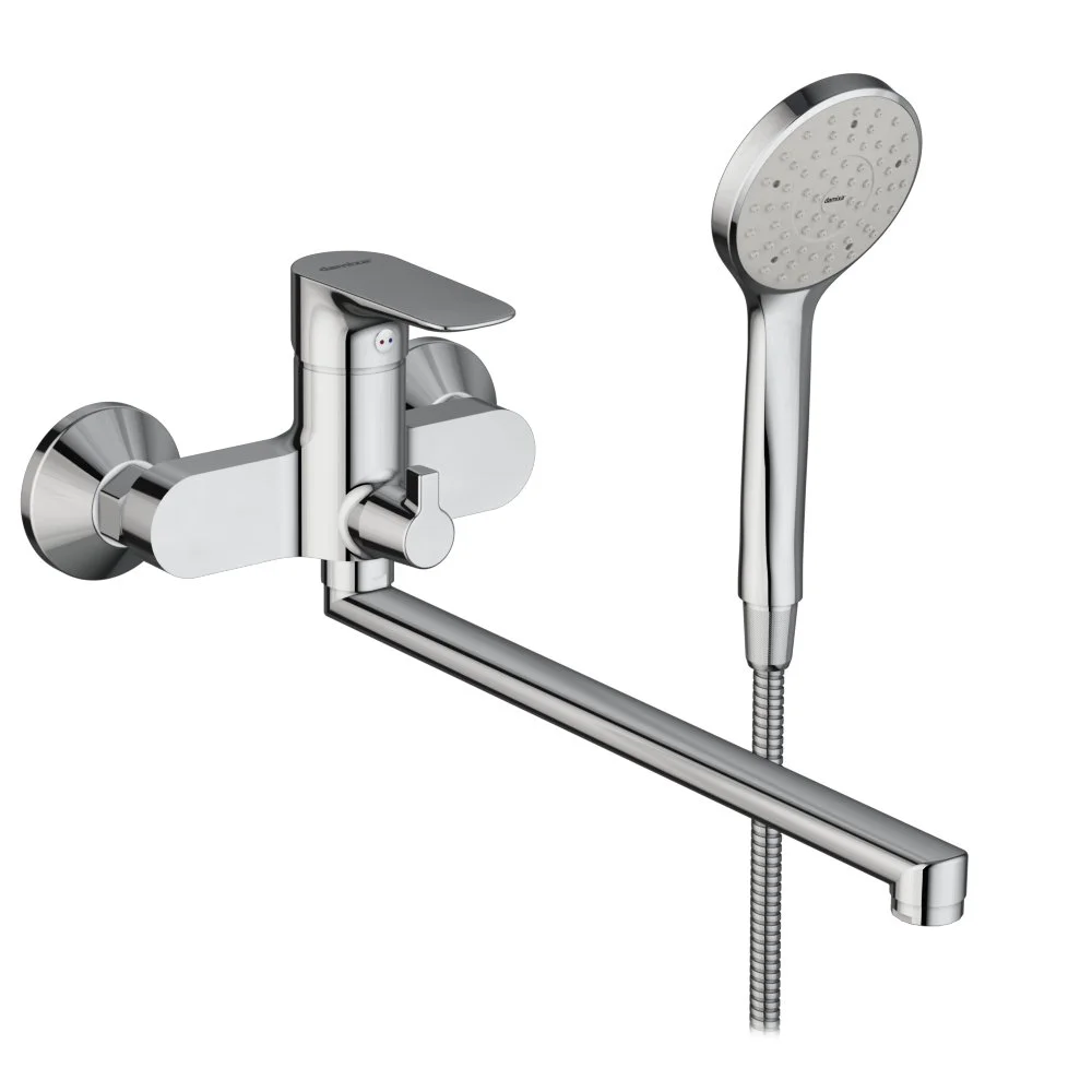 - В комплекте идет душевая лейка, держатель и шланг для душа.