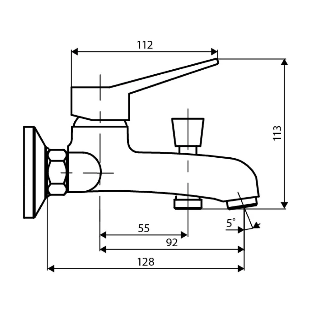 Смеситель для ванны и душа: излив фиксированный 92 мм, керамический картридж, в комплекте эксцентрики и декоративные розетки, выход 1/2 для душевого шланга.