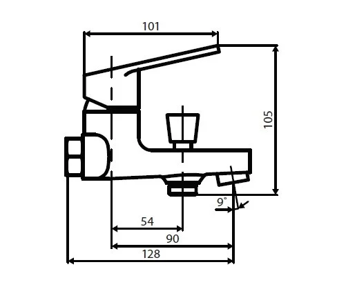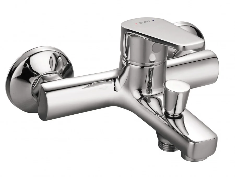 Смеситель для ванны и душа: излив фиксированный 90 мм, керамический картридж, в комплекте эксцентрики и декоративные розетки, выход 1/2 для душевого шланга.
