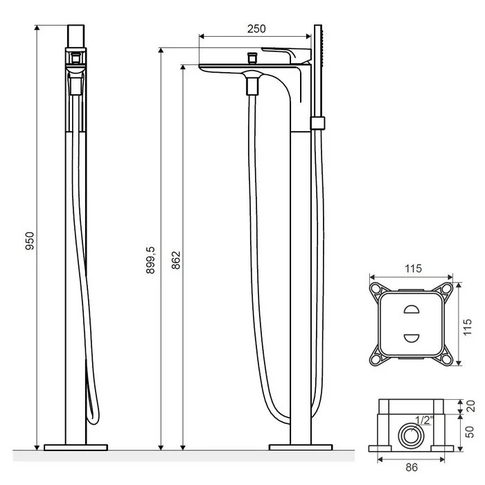 - высота излива: 86 см;