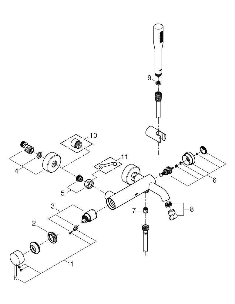 Этот смеситель для ванны из коллекции GROHE Essence поставляется в комплекте с душевым гарнитуром и сочетает в себе привлекательный дизайн со множеством функциональных преимуществ. Благодаря элегантным цилиндрическим формам и сияющему хромированному покрытию GROHE StarLight, этот однорычажный смеситель отличается эффектным внешним видом и одновременно с этим может похвастаться высоким уровнем функциональности. Технология GROHE SilkMove обеспечивает ему легкость в управлении. Встроенный переключатель позволяет плавно перенаправлять струю воды между выпусками для ванны и душа. В комплект данного смесителя настенного монтажа также входит настенное крепление для ручного душа GROHE Tempesta 100 Cosmopolitan (27594000), ручной душ GROHE Euphoria Cosmopolitan Stick (27400000) с расходом воды не более 9,5 литров в минуту и душевой шланг GROHE Silverflex длиной 1500 мм с защитой от перекручивания TwistFree (28364).