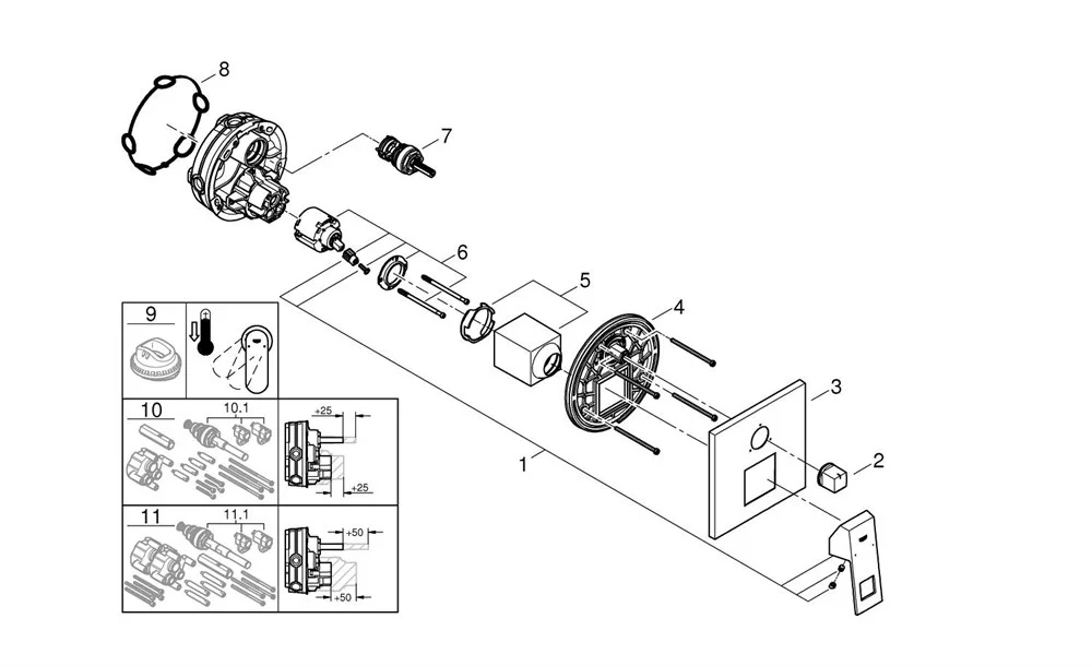 - комплект верхней монтажной части для GROHE Rapido SmartBox 35 600 000