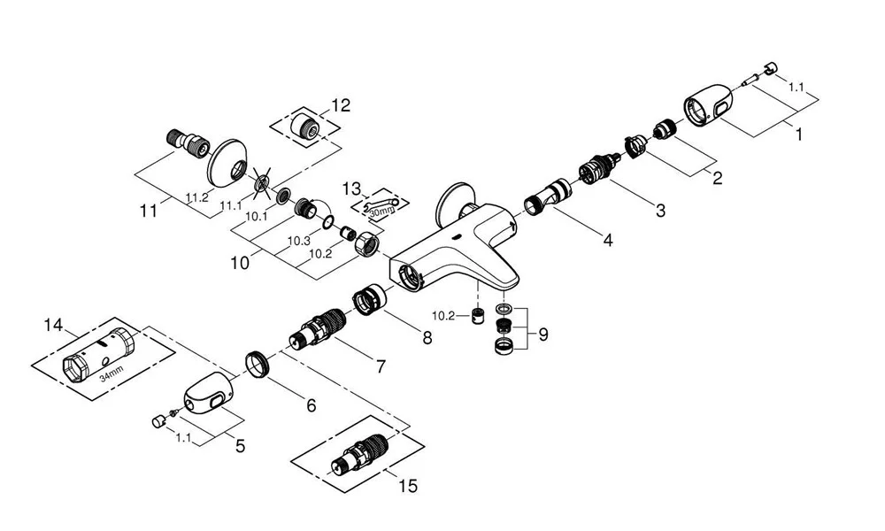 - GROHE EcoButton (встроенная кнопка с функцией экономии воды для душа) - регулировка расхода - переключатель: ванна/душ