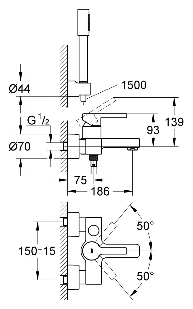 Купить Смесители для ванны производства GROHE (Германия), код товара: 153713 можно выгодно в Сантемо.ру: