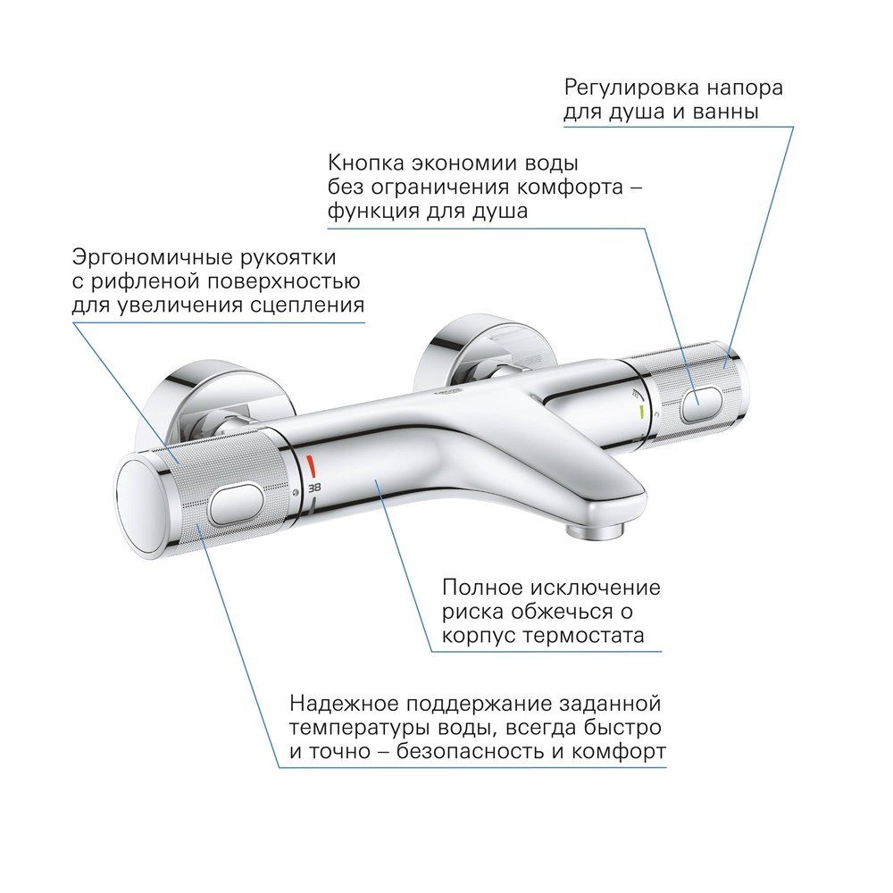Купить Смесители для ванны/душа с термостатом производства GROHE, код товара: 217290 можно выгодно в Сантемо.ру: