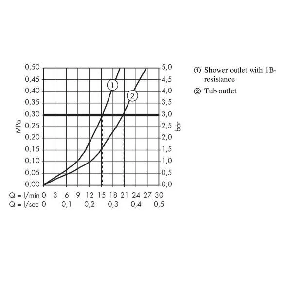 • расход воды у ручного душа при давлении 3 бар: 8 л/мин