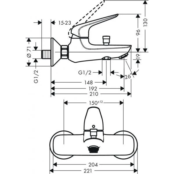 Смеситель для ванны hansgrohe Novus однорычажный, хром 71040000