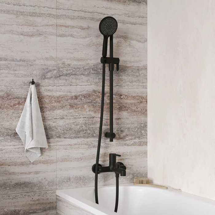 Стильный смеситель для ванны сочетает актуальный современный дизайн и популярный черный цвет. Тонкая удлиненная ручка добавляет изящества и комфорт в управлении. Расстояние между ручкой и изливом увеличено для большего удобства. Без душевых аксессуаров в комплекте.