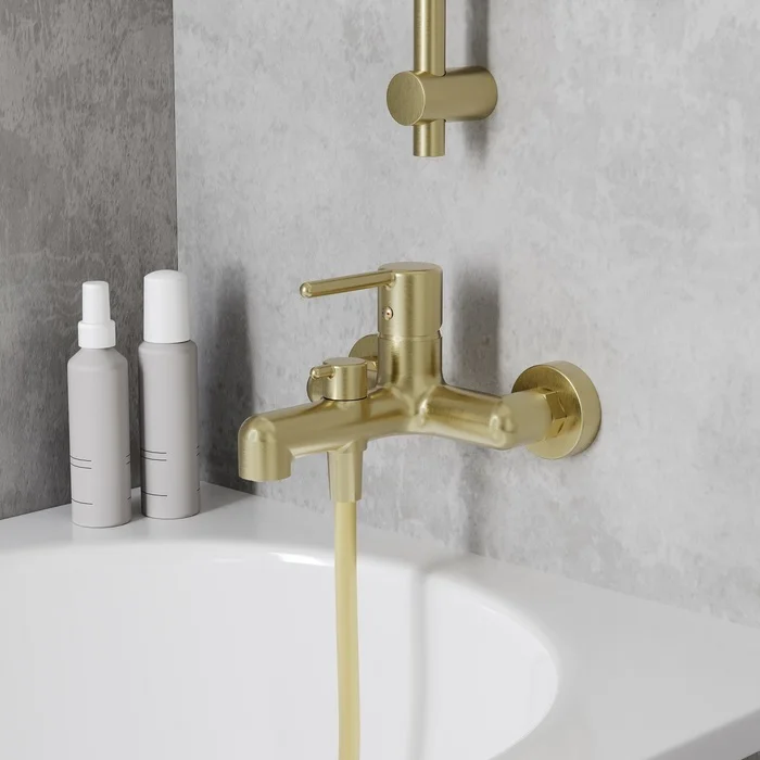 Стильный смеситель для ванны сочетает актуальный современный дизайн и новый трендовый оттенок матового золота. Тонкая удлиненная ручка добавляет изящества и комфорт в управлении. Расстояние между ручкой и изливом увеличено для большего удобства. Без душевых аксессуаров в комплекте.