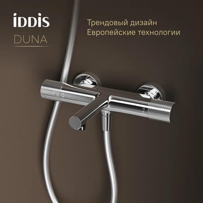 Смеситель для ванны с термостатом Duna – воплощение актуальных трендов в дизайне смесителей в безупречном исполнении: фрезеровка, модные цвета и фактуры. Без душевых аксессуаров в комплекте.