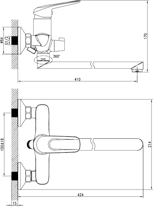 В комплект входят лейка и шланг из нержавеющей стали длиной 1,5 м с защитой от перекручивания.