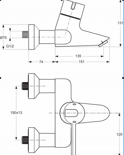 CERAPLUS Настенный термостатический однорукоятковый смеситель для ванны и душа с цикловым затвором, монтаж на стандартных эксцентриках с возможностью облегченного демонтажа, с шумопонижателем, индикаторы горячей / холодной воды, антивандальный ламинарный регулятор потока (защита от попадания бактерий), цикловой затвор (безопасная подача горячей воды)