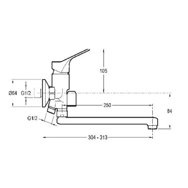 Настенный смеситель с возможностью подключения лейки (не в комплекте)