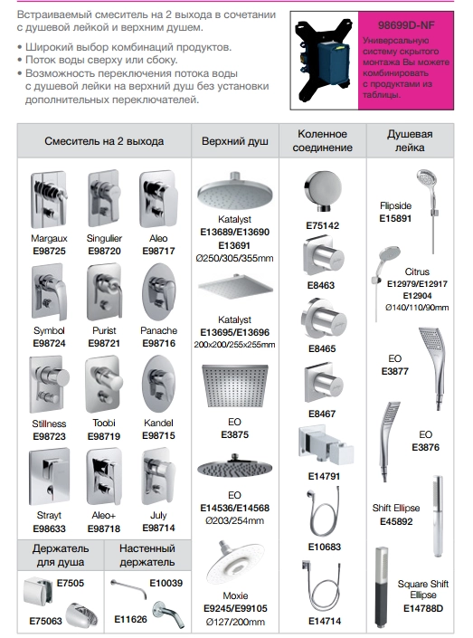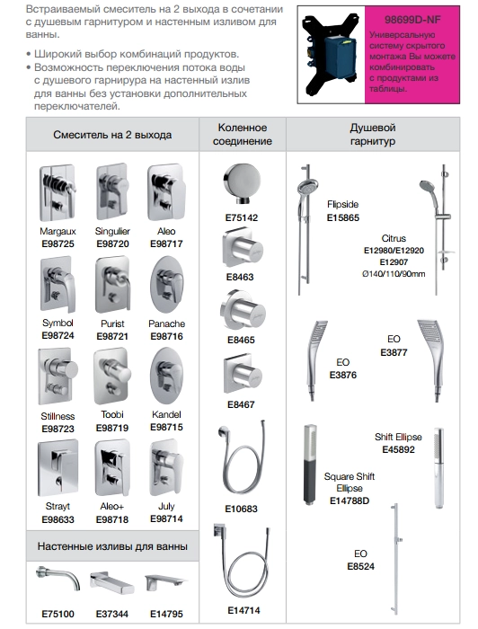 Предусмотрено 3 варианта возможной комплектации данного смесителя: