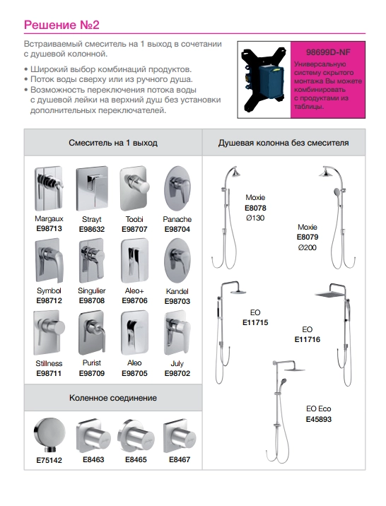 Предназначен для смесителей без и с переключателем на два выхода, с керамическим картриджем и термостатом, а также для дивертеров на 3 выхода.