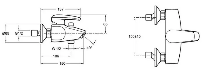 Tea, смеситель для ванны и душа, арт. E71600-CP, Jacob Delafon, Франция