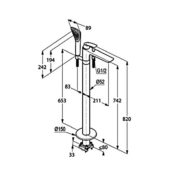 - вертикальный монтаж для отдельно стоящих ванн