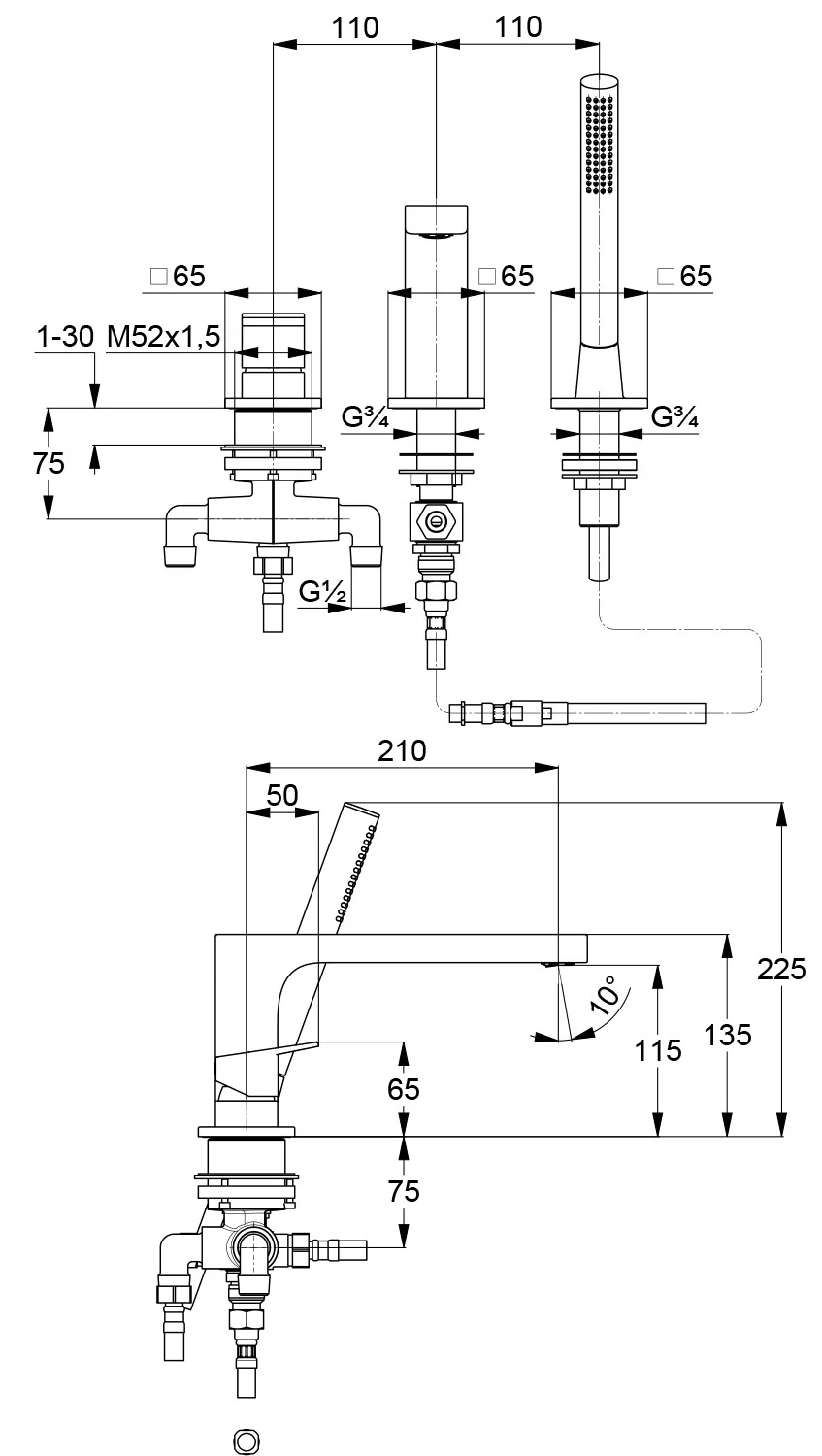 Смеситель для ванны Kludi DECUS 544483975 черный матовый