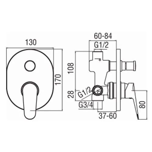 Смеситель для ванны NOBILI Blues BS101100CR (внешняя и скрытая часть)