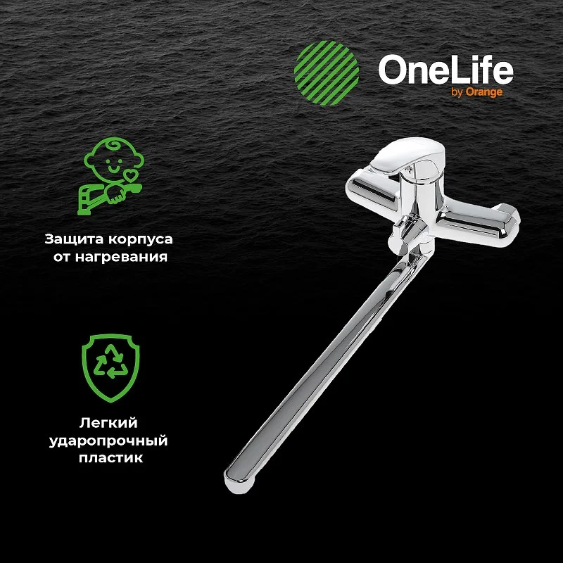 Однозахватный полимерный смеситель для ванны/душа с универсальным изливом OneLife гармонично дополнит интерьер ванной комнаты в современном или традиционном стиле. Фирменный картридж Orange обеспечит легкое управление напором и температурой воды. Вместо привычного латунного сплава он изготовлен из запатентованного высокотехнологичного полимера (выдерживает 510 000 циклов и 53 АТМ без замены изделия после теста на цикличность, исключает возможность обжечься при касании, не подвержен коррозии и окислению, стойкий к отрицательным температурам), что обеспечивает срок службы более 15 лет. Встроенный аэратор экономит воду и, обогащая струю воздухом, делает её мягкой и без брызг. Переключение между режимами душ/ванна осуществляется с помощью поворотного дивертора. Цвет глянцевый хром.