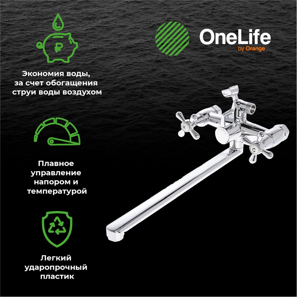 Двухзахватный полимерный смеситель для ванны/душа с универсальным изливом и душевым набором OneLife гармонично дополнит интерьер ванной комнаты в традиционном стиле. Вместо привычного латунного сплава он изготовлен из запатентованного высокотехнологичного полимера (выдерживает 510 000 циклов и 53 АТМ без замены изделия после теста на цикличность, исключает возможность обжечься при касании, не подвержен коррозии и окислению, стойкий к отрицательным температурам), что обеспечивает срок службы более 15 лет. Изделие снабжено долговечными керамическими кран-буксами. Встроенный аэратор экономит воду и, обогащая струю воздухом, делает её мягкой и без брызг. В комплекте душевой набор: ручной душ d70 мм (1 режим, форсунки с функцией легкого очищения от известкового налета), душевой шланг 150 см в металлической оплетке (с защитой от перекручивания), держатель душа на корпусе смесителя. Цвет глянцевый хром.