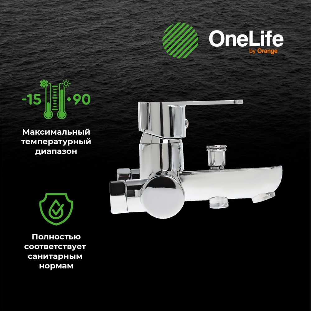 Однозахватный полимерный смеситель для ванны/душа с фиксированным изливом OneLife гармонично дополнит интерьер ванной комнаты в современном или традиционном стиле. Фирменный картридж Orange обеспечит легкое управление напором и температурой воды. Вместо привычного латунного сплава он изготовлен из запатентованного высокотехнологичного полимера (выдерживает 510 000 циклов и 53 АТМ без замены изделия после теста на цикличность, исключает возможность обжечься при касании, не подвержен коррозии и окислению, стойкий к отрицательным температурам), что обеспечивает срок службы более 15 лет. Встроенный аэратор экономит воду и, обогащая струю воздухом, делает её мягкой и без брызг. Переключение между режимами душ/ванна осуществляется с помощью вытяжного дивертора. Цвет глянцевый хром.