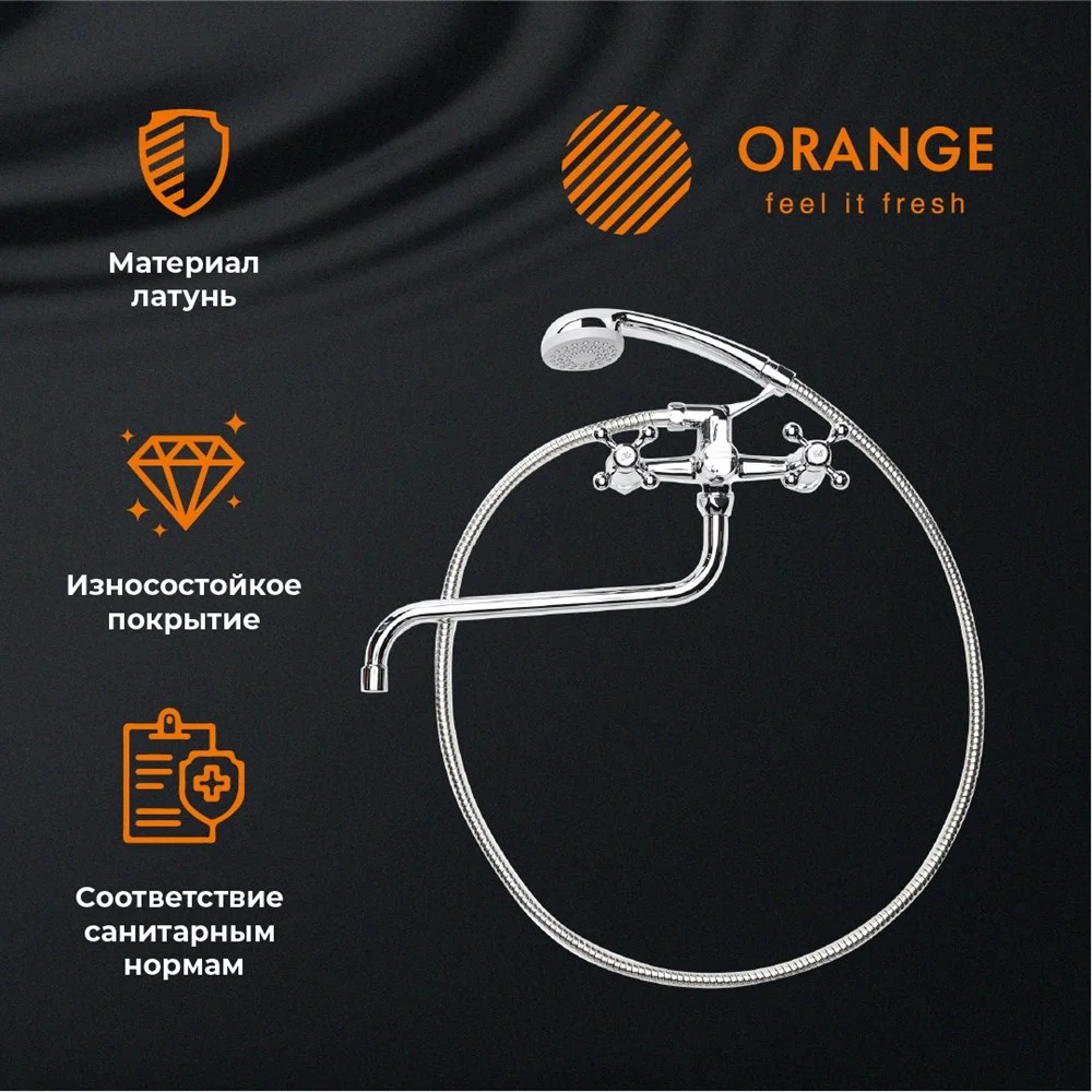 Смеситель для ванны/душа с универсальным изливом и душевым набором Orange Classic Pro для тех, кто выбирает надежность и практичность. Корпус выполнен из высококачественной латуни, не подверженной коррозии от длительного контакта с водой. Глянцевая хромированная поверхность служит защитой от коррозии и внешних механических воздействий. Изделие снабжено долговечными керамическими кран-буксами, благодаря чему срок службы измеряется десятилетиями. Аэратор экономит воду и, обогащая струю воздухом, делает её мягкой и без брызг. Переключение между режимами душ/ванна осуществляется с помощью поворотного дивертора. В комплекте душевой набор: душевая лейка d68 мм (1 режим), шланг в металлической оплетке 1500 мм (с защитой от перекручивания).