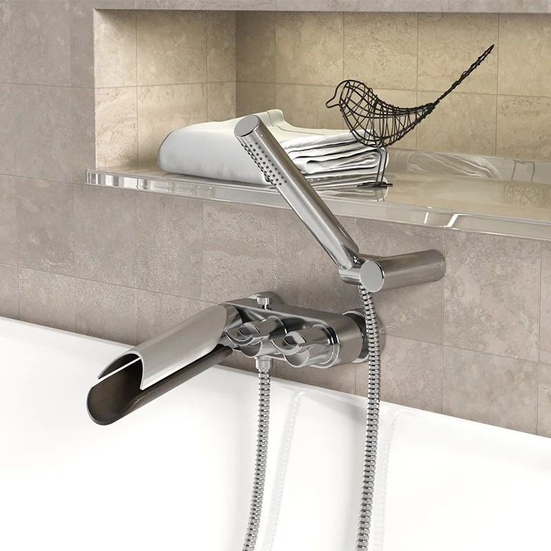 Вдохновленный знаменитыми итальянскими фонтанами, скульптор, художник и режиссер Мирко Босио создал коллекцию MORGANA специально для бренда PAINI. Смеситель для ванны сочетает в себе естественность и функциональность. Оригинальная форма и открытый излив создают миниатюрный водопад в интерьере. В комплект входит лейка для душа, шланг и Держатель ручного д