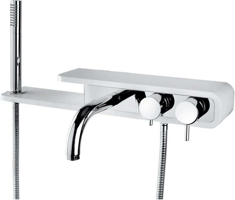 - С душевым гарнитуром: полка с фиксированным креплением душевой лейки; душевая лейка; гибкий шланг