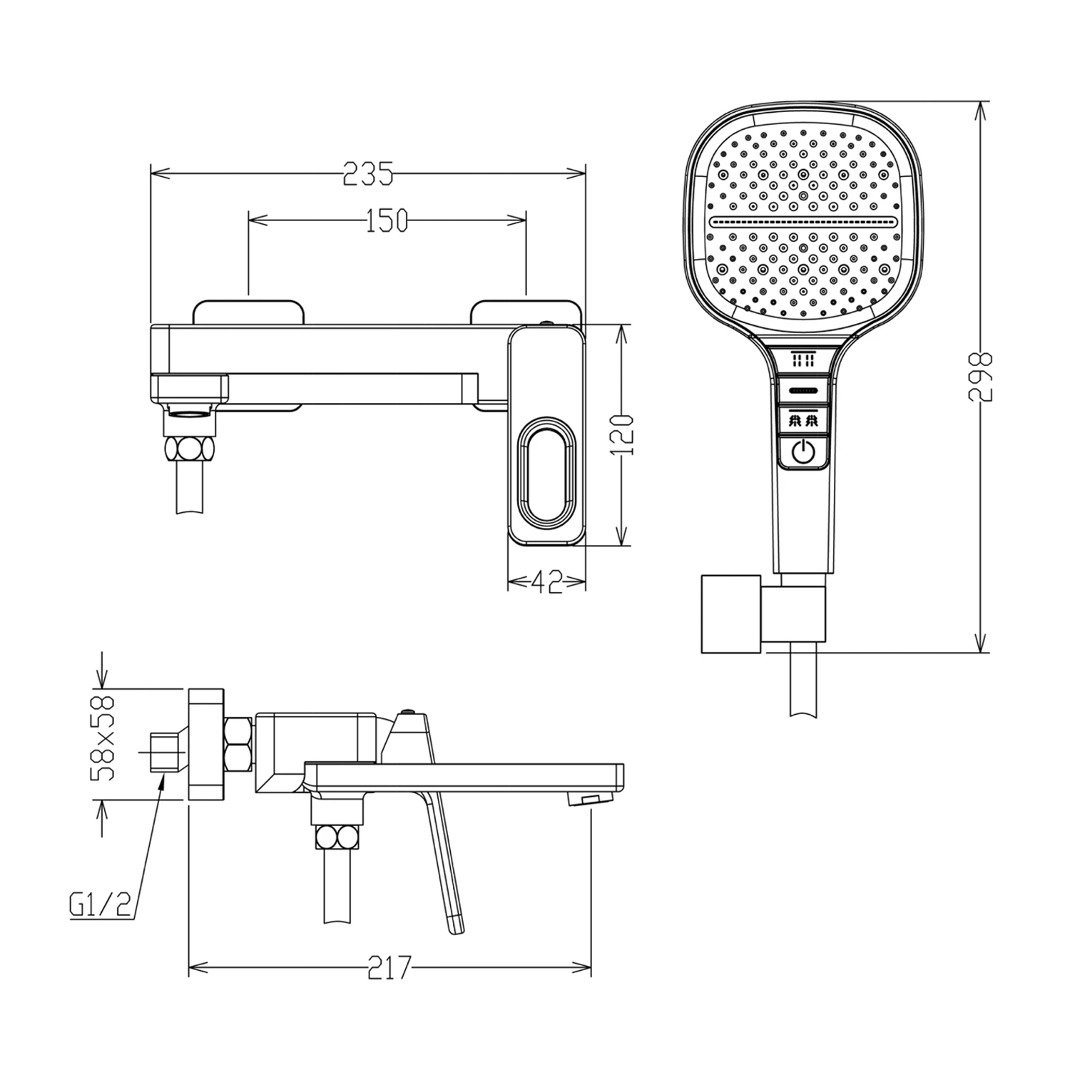 • Душевой шланг: силиконовый 1,5 м