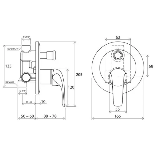 предусмотрен как для ванн (наполнение переливом и вывод для ручного душа), так и душевых уголков с фиксированной и ручной лейками.