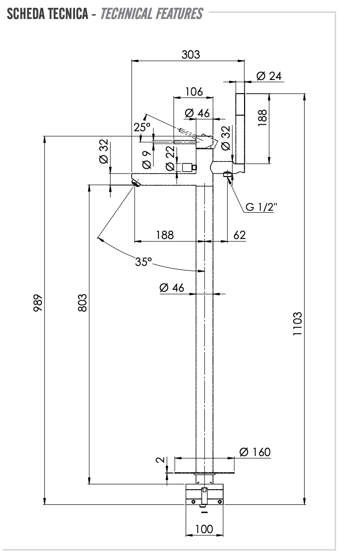Высота излива, мм