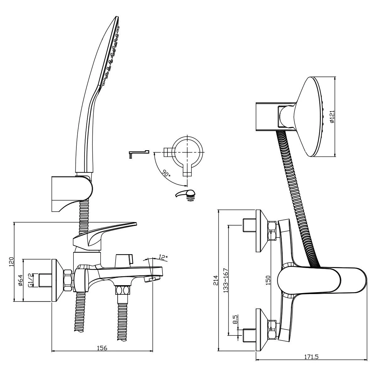 - Аксессуары в комплекте (шланг 1,5 м, настенное поворотное крепление для лейки, 3-функциональная лейка ø121*259 мм с функцией легкой очистки)