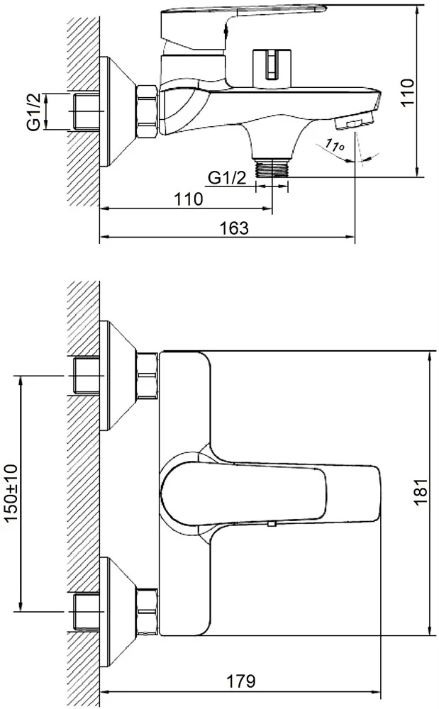 Смеситель для ванны STWORKI Хельсингборг XE-02cr однорычажный, настенный, латунь, с функцией экономи