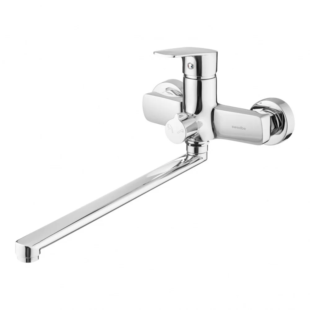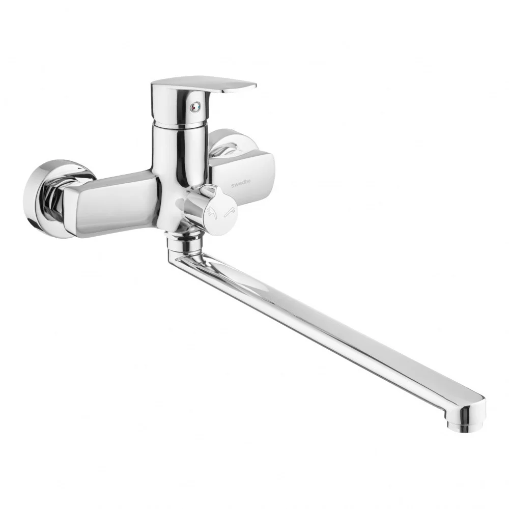 Шведский однорычажный смеситель для ванны с длинным Z-изливом Swedbe Venado — универсальное решение для небольшой по размерам ванной комнаты. Благодаря длине крана смеситель можно использовать как для наполнения ванны, так и для умывания в раковине. Дивертер с фиксацией предоставляет возможность бесперебойно принимать душ, не допуская самопроизвольного перенаправления воды из лейки в кран при скачках давления в водопроводной системе. Излив сделан без единого шва по сложнейшей технологии, которая гарантирует стойкость к химическим и механическим воздействиям, исключает возможность протечки.