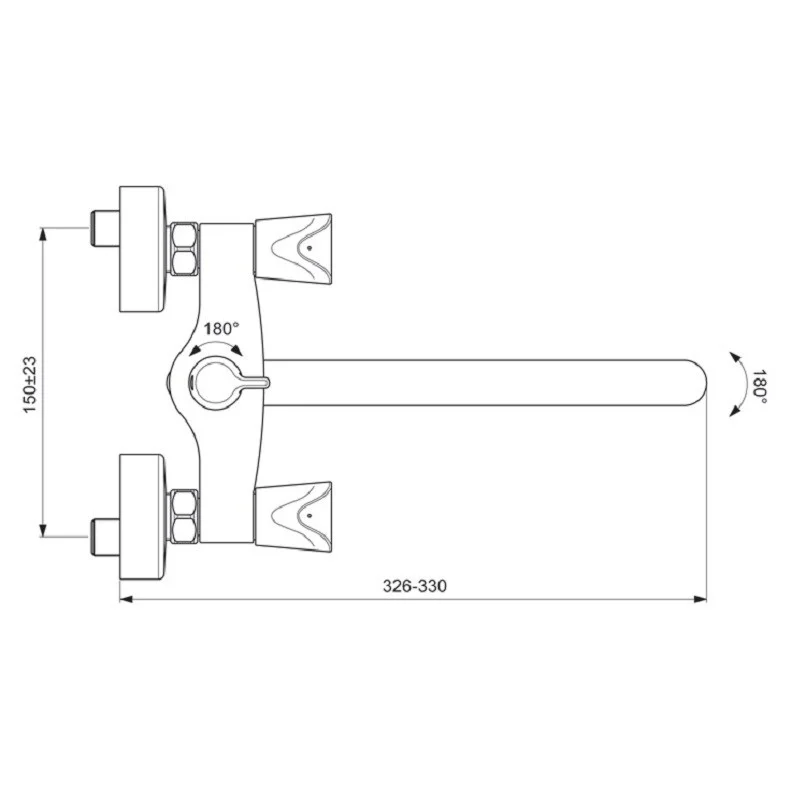 - Смеситель двухвентильный для ванны и душа с длинным изливом