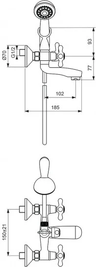 - Переключение ванна/душ: ручное (позволяет использовать функцию "душ" даже при очень низком давлении воды)