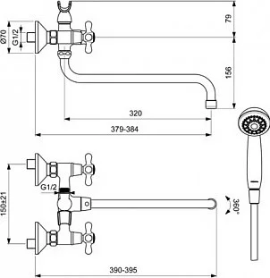 Смеситель для ванны Vidima Retro BA348AA, хром/золото