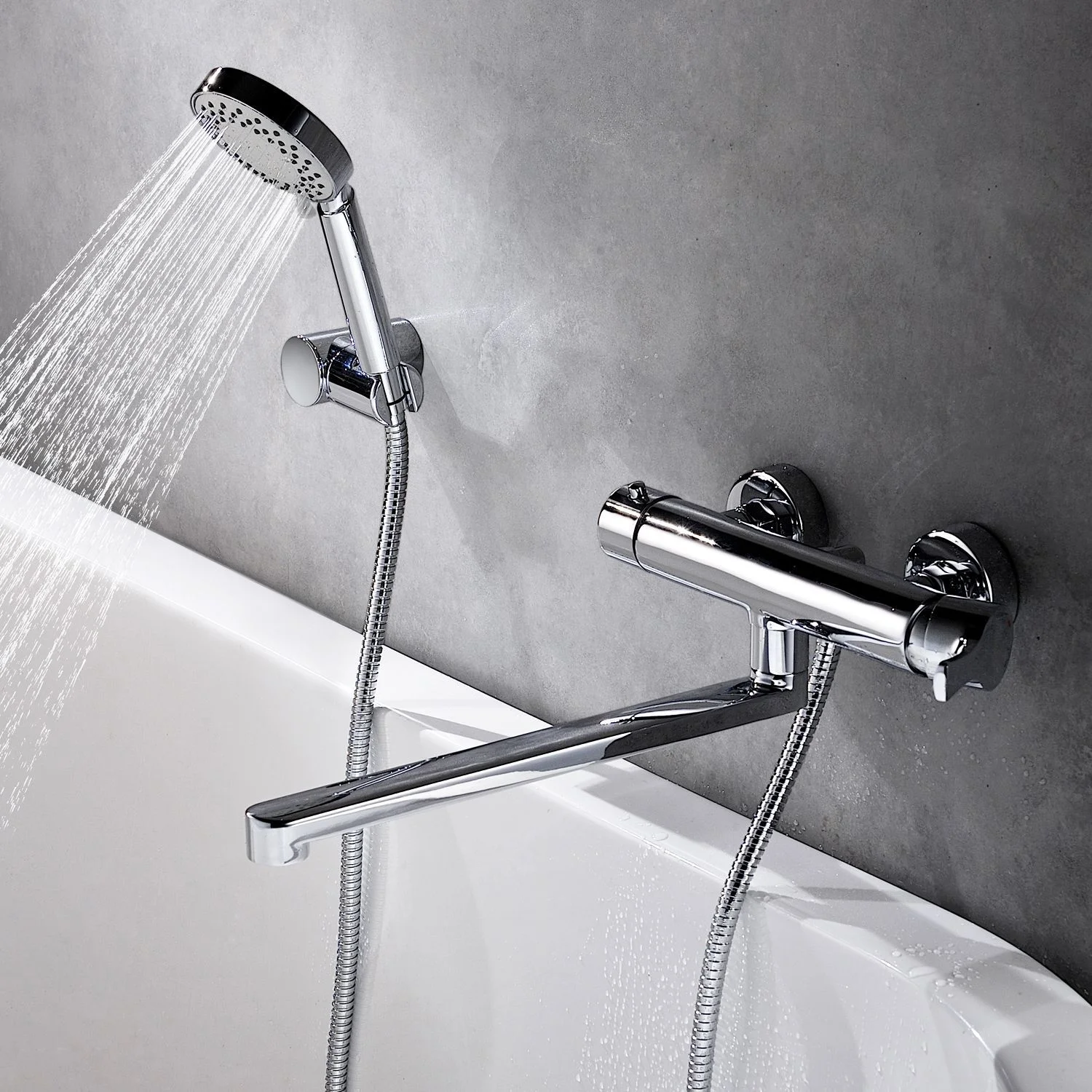 Входит в комплектЛейка 5-функциональная с системой защиты от известковых отложений Шланг металлический 1500 мм, подключение к лейке Поворотн