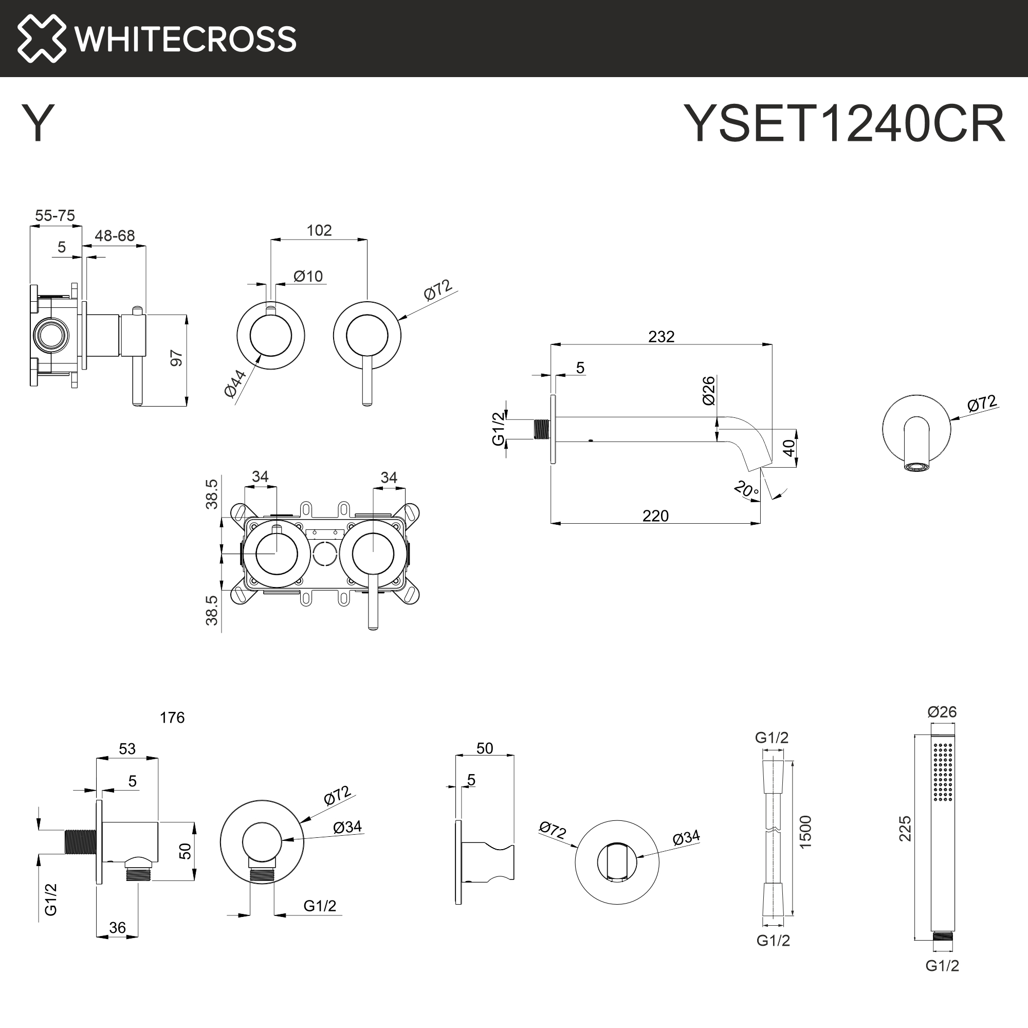 Смеситель для ванны WHITECROSS Y YSET1240CR скрытого монтажа, хром
