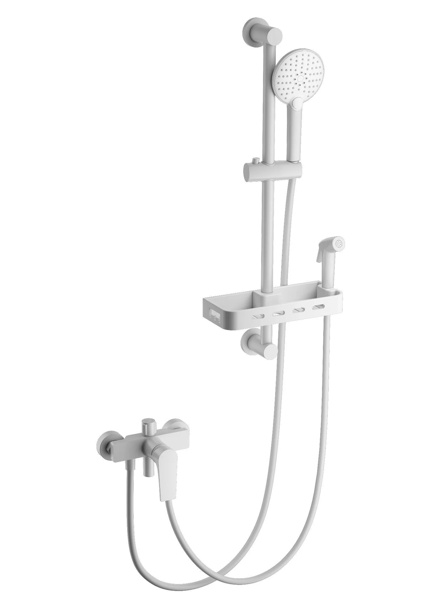 смеситель, душевой шланг/ держатель для душа, полка, душевая штанга, душевая лейка, эксцентрики, монтажный комплект