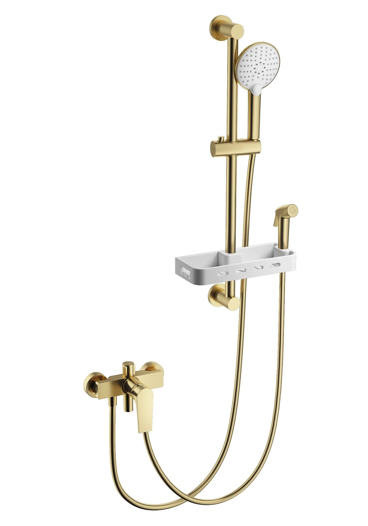 смеситель, душевой шланг/ держатель для душа, полка, душевая штанга, душевая лейка, эксцентрики, монтажный комплект