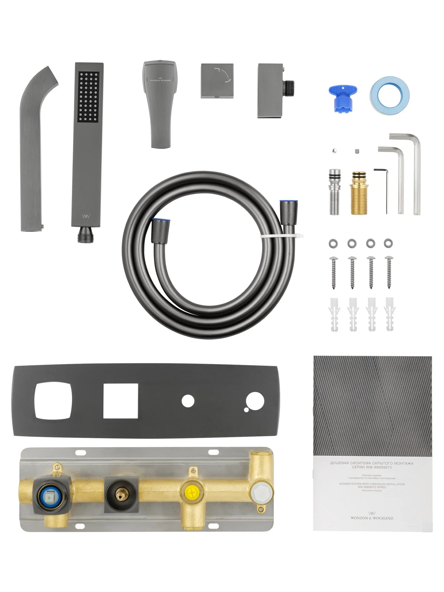 смеситель, душевой шланг, держатель для душа, душевая лейка, эксцентрики, монтажный комплект