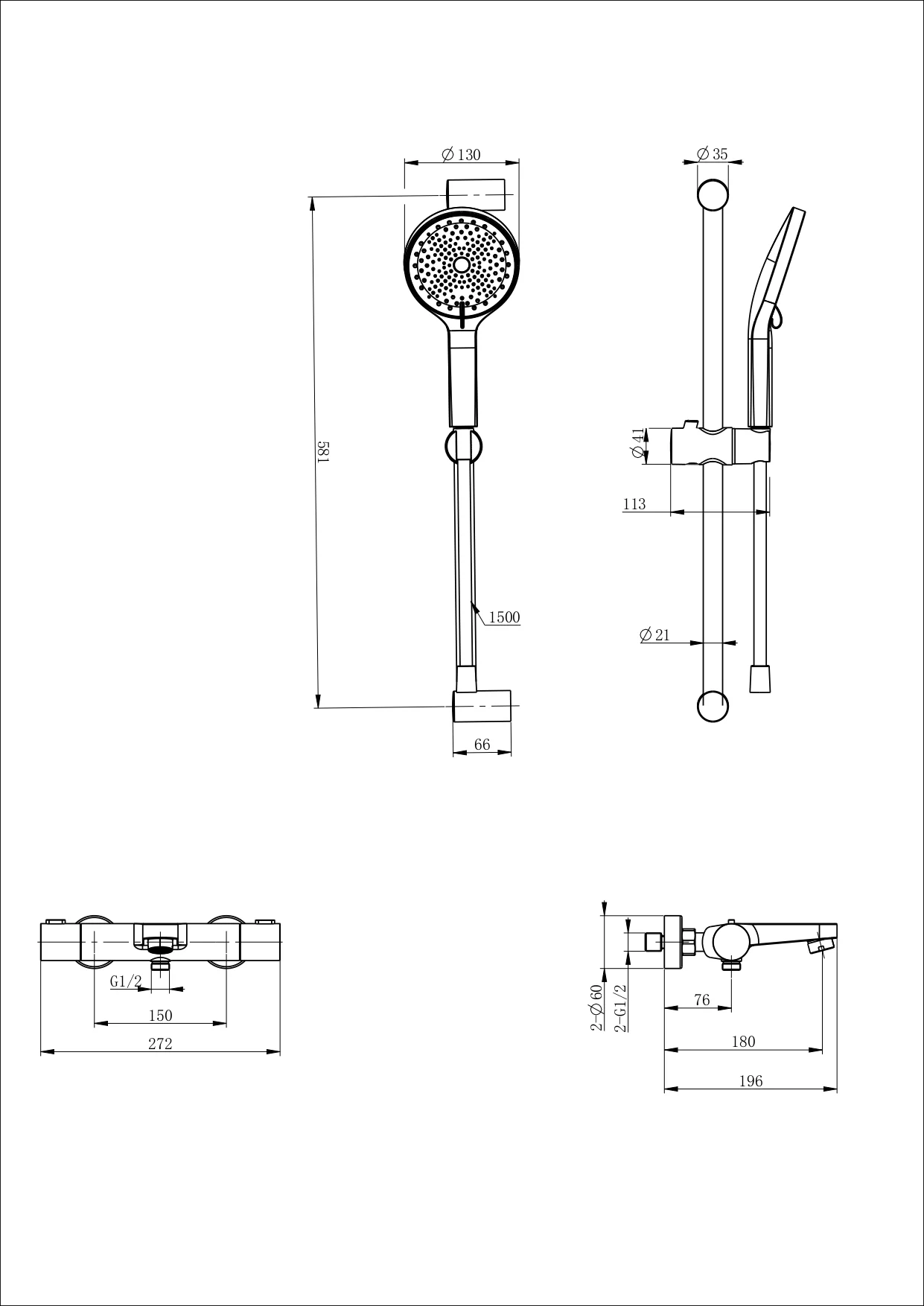 смеситель, душевой шланг/ держатель для душа, душевая штанга, душевая лейка, эксцентрики, монтажный комплект