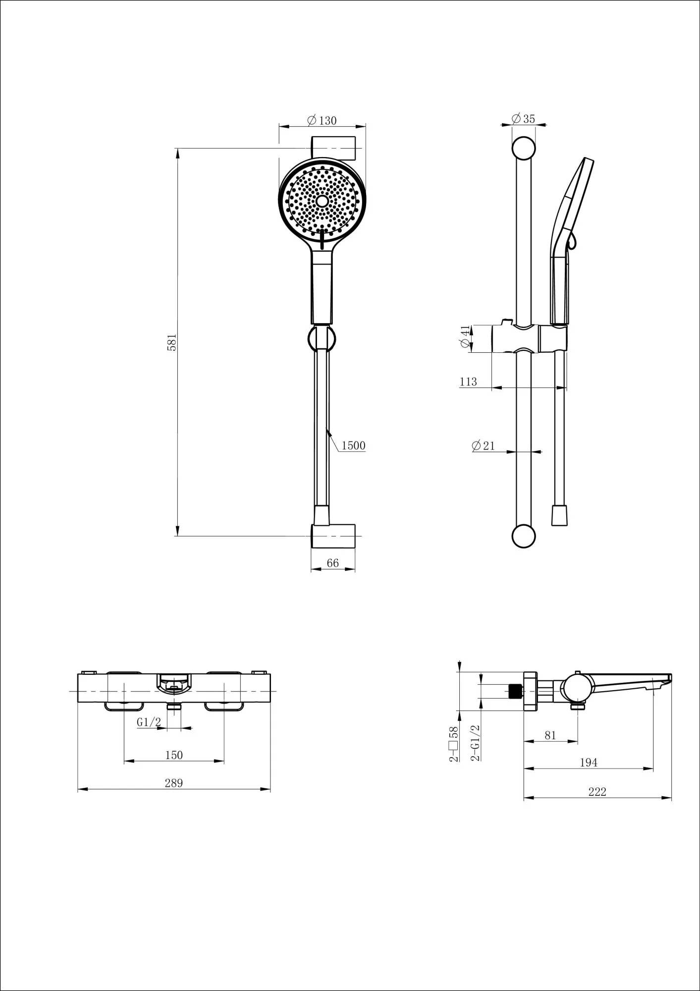 смеситель, душевой шланг/ держатель для душа, душевая штанга, душевая лейка, эксцентрики, монтажный комплект