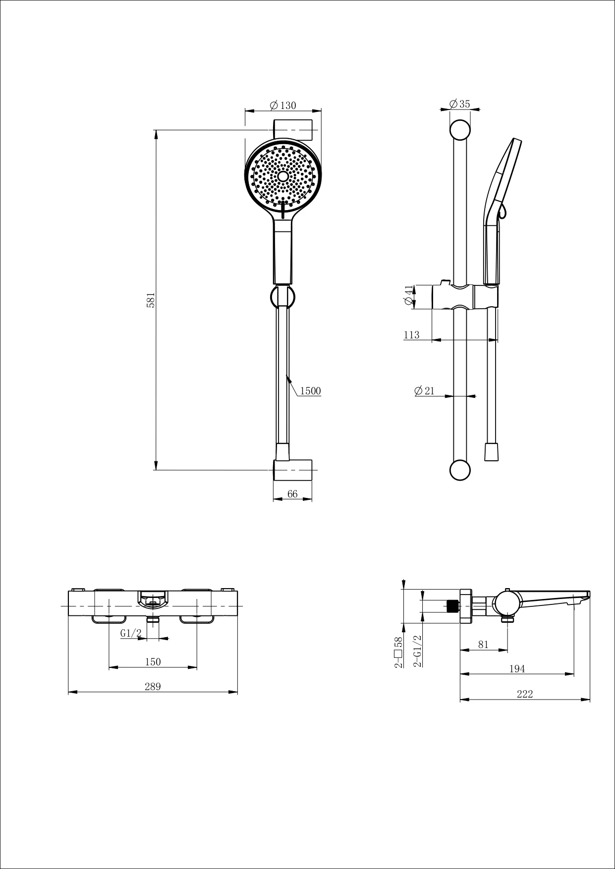 смеситель, душевой шланг/ держатель для душа, душевая штанга, душевая лейка, эксцентрики, монтажный комплект